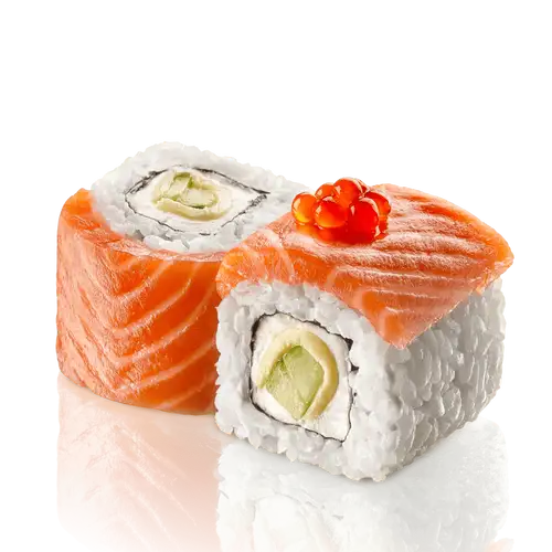 Лосось, два вида сыра, огурец, красная икра, нори, рис заправленный