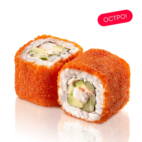 Тигровая креветка, авокадо, огурец, икра тобико, соус спайс, нори, рис заправленный