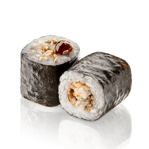 Угорь, кунжут, соус унаги, нори, рис заправленный
