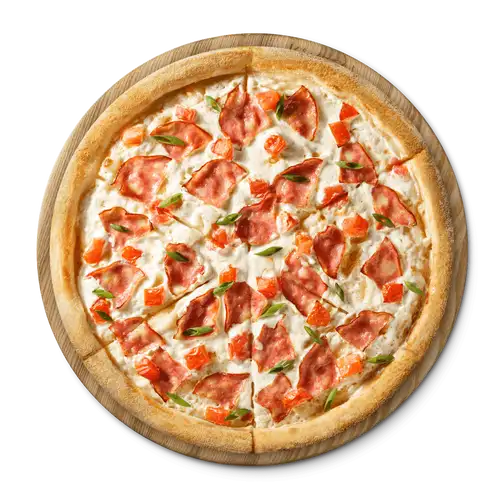 Сливочный соус, ветчина, томаты, зелёный лук