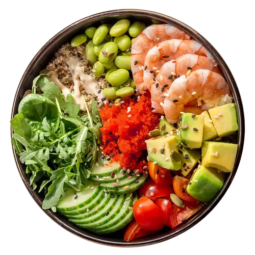 Поке на киноа с креветками