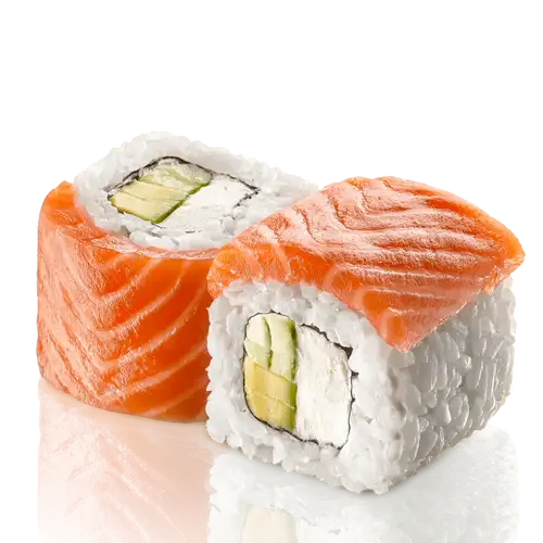 Больше размер - больше начинки! Лосось, сливочный сыр, авокадо, огурец, нори, рис заправленный