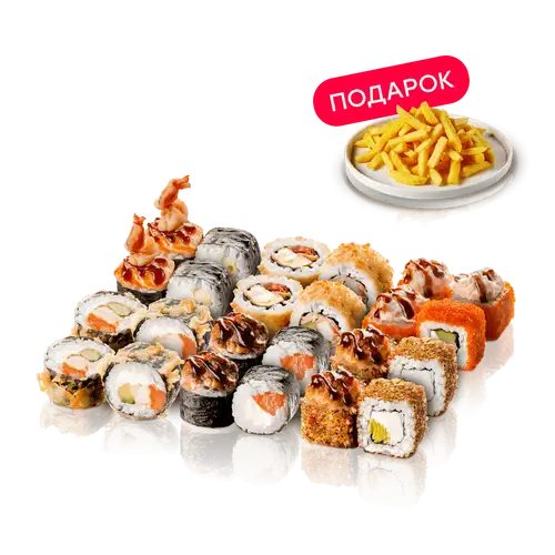 КАРТОФЕЛЬ ФРИ В ПОДАРОК! Бангкок 1/2 / Гонконг 1/2 / Шиитаке 1/2 / Эквадор 1/2 / Бостон 1/2 / Сяке Фрай Маки 1/2