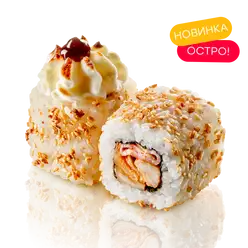 Запеченный ролл с креветкой и соусом маракуйя