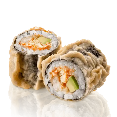 Тигровая креветка, авокадо, тамаго, сырный соус, кляр, нори, рис заправленный