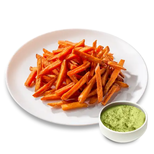 Батат, обжаренный во фритюре до золотистой корочки, приправленный ароматными специями. Подается с соусом гуакамоле